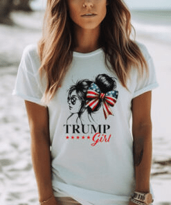 Show your support with the Trump Girl America Coquette Bow Shirt, a stylish and comfortable T-shirt designed for those who proudly back the MAGA movement.